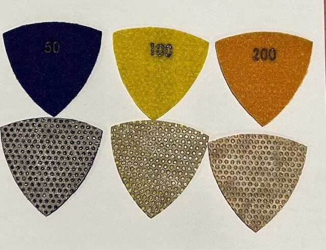 Velcro Backed Vacuum Brazed Corner Tools – Available in 50, 100, 200, 400, and 800 Grit